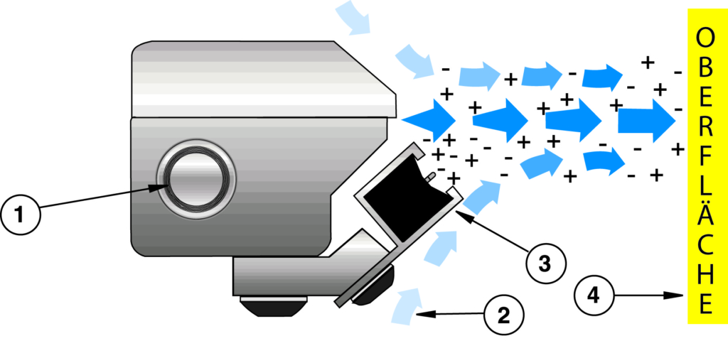 Luftvorhang reinigt Oberflächen von Statik, Partikeln, Staub