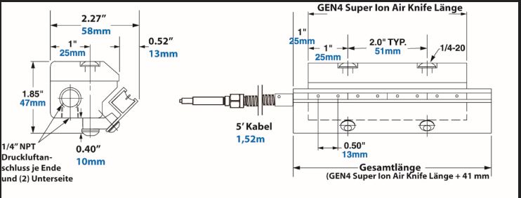 eingestellt werden. Das GEN4 Super Ion Air Knife wird elektrisch